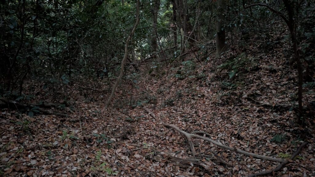 中の城に続いて訪れた東の城は城郭遺構を良く残している様に見えましたが、暗くなってきていて写真撮影が難しくなってきたので途中で断念しました。
