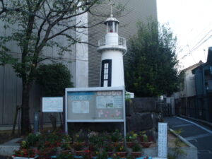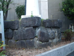 ただ台場小学校前には説明板と一緒に第二台場に建っていた品川灯台を模した構造物が建っていて、その土台には石垣の石が用いられいる様です。